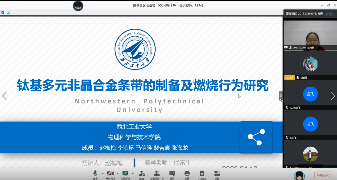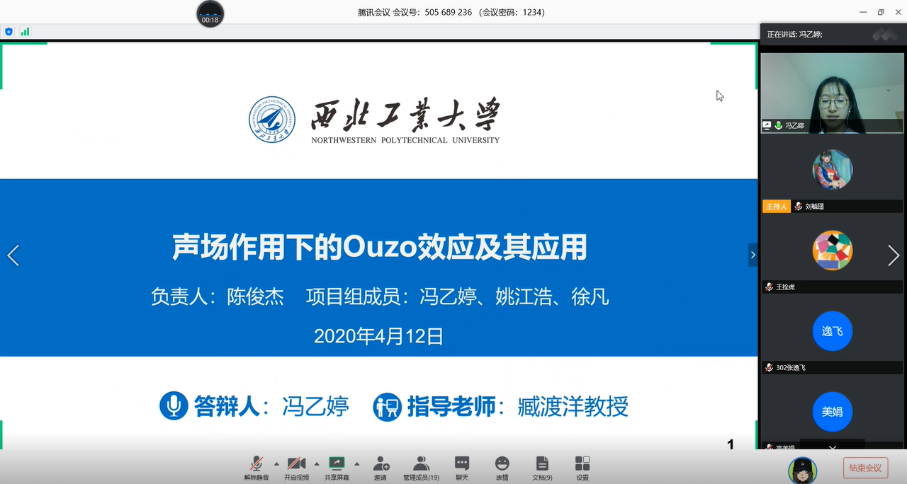 的8位本科生同学:党润泽、冯乙婷、刘晨龙、张逸飞、王文璨、王文睿、赵梅梅、朱龙飞作为项目参与者,通过前期积极准备,从项目背景、执行情况、相关总结及项目创新点、经费执行情况等方面为我们展现了相关项目所获成果。会议答辩期间bl动画