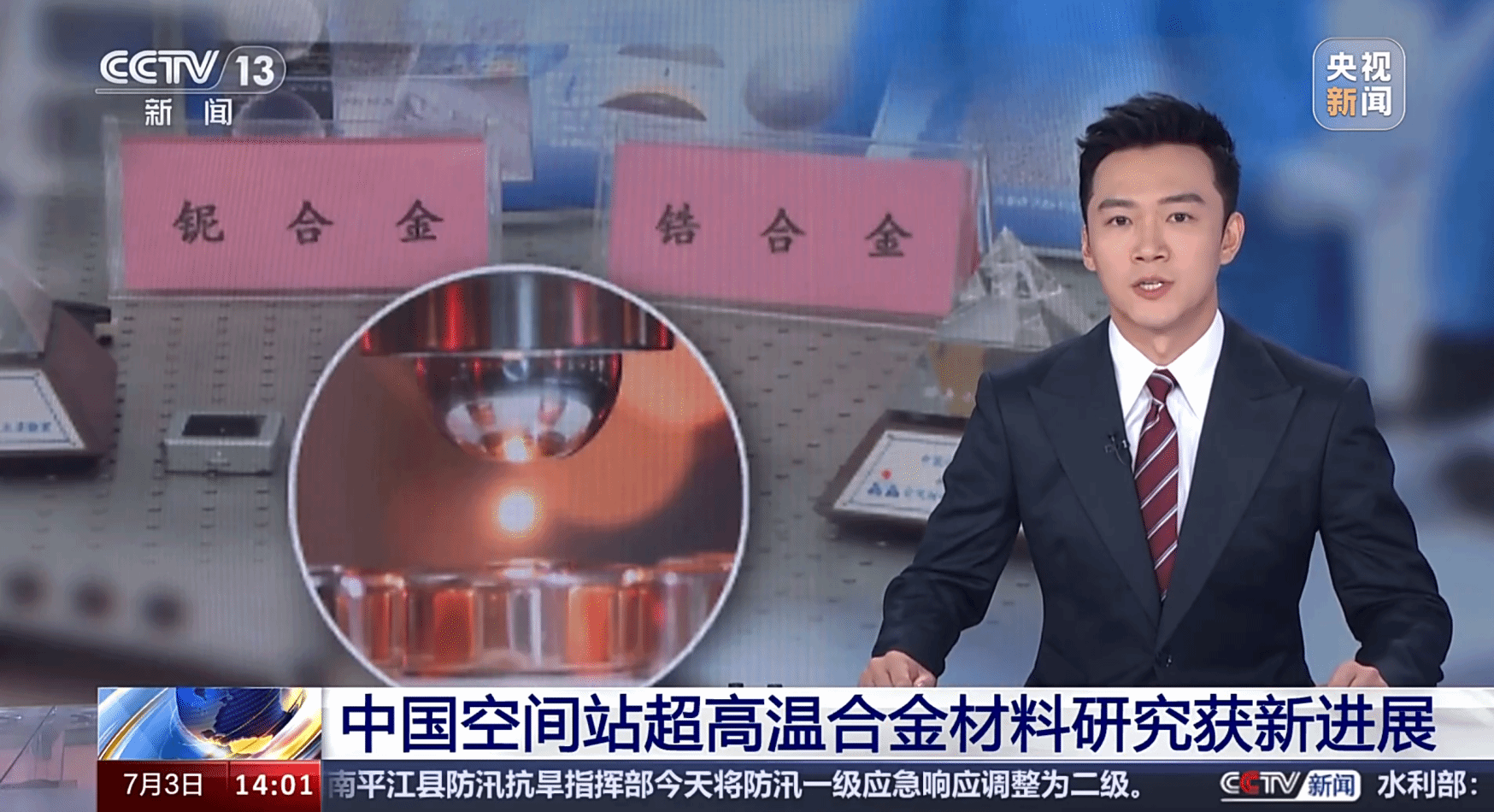7月3日,央视新闻以“微重力环境优势独特 中国空间站超高温合金材料研究获新进展”为题,报道魏炳波院士团队通过中国空间站提供的微重力环境获得了材料的关键物理特性,实现了难熔合金微观组织结构与宏观形态的双调控。