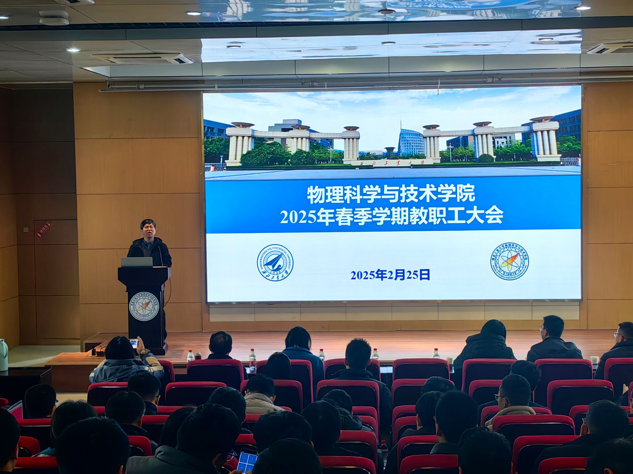 最后,晁小荣书记作总结讲话。他强调,全体教职工要深入学习贯彻李言荣书记、宋保维校长讲话精神,坚持“三高”的发展思路,加快建设一流物理学院。此外,晁小荣书记对全体教职工提出了四点期望与要求:一是要充分发挥党建引领作用,将党旗插在人才培养和科学研究的第一线,推动党建与业务深融互促,以高质量党建引领学院高质量发展。二是要发挥数智赋能作用,积极拥抱人工智能、大数据等前沿技术,主动应对新技术对教学和人才培养带来的机遇与挑战。三是要优化管理水平,以科学、高效、精细化的管理理念,提升学院治理能力和运行效率,为学院发展提供坚实的制度保障。四是要优化服务保障,增强服务意识,提升服务质量,为师生创造良好的学习、工作和生活环境,为学院各项事业的顺利推进提供有力支撑。
