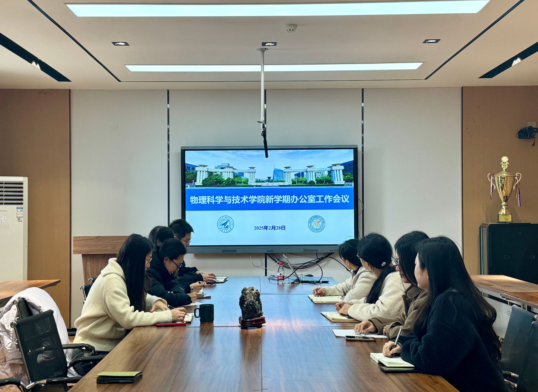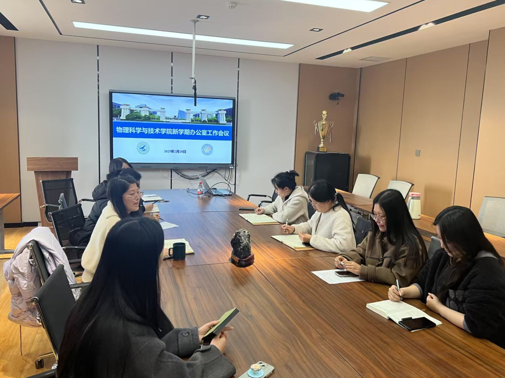 在学院楼454会议室召开新学期办公室工作会议,学院办公室副主任及办公室全体人员参加了此次会议。