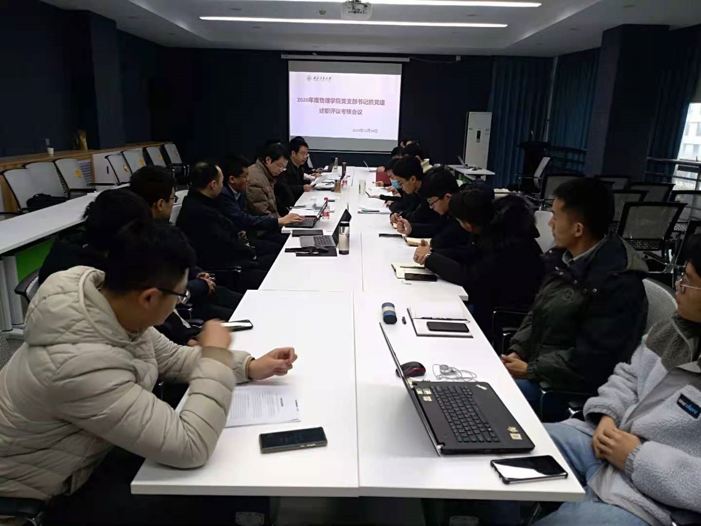12月29日上午,物理学院党委召开了2020年党支部书记抓党建述职评议考核大会。评议考核组由学院党委委员、教师代表、学生代表和党外人士代表组成,还特别邀请了人文与经法学院党委书记张清江和化学与化工学院“支部书记工作室”支部书记张宝亮参加指导。会议由学院党委书记杨铭主持,物理学院所有师生支部书记参加会议。