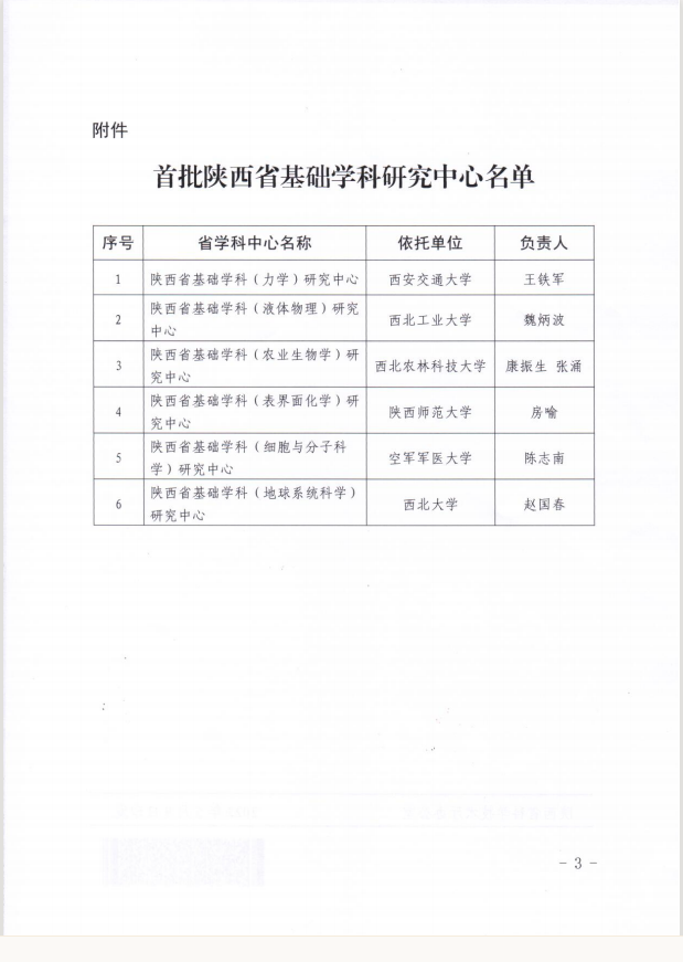 近日,陕西省科技厅下发《陕西省科学技术厅关于组建首批陕西省基础学科研究中心的通知》,依托我校建设的陕西省基础学科(液体物理)研究中心获批立项,是我省首批立项建设的6个基础学科研究中心之一。