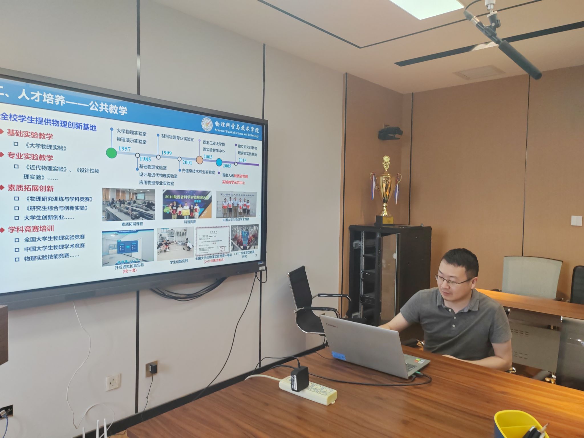 在学院楼454会议室召开一流课程建设研讨会。会议特邀哈尔滨工业大学物理学院副院长张宇共同研讨一流课程建设与教学改革的思路与举措,副院长侯泉文、院长助理李东、大学物理、大学物理实验及相关课程教师参加了会议。