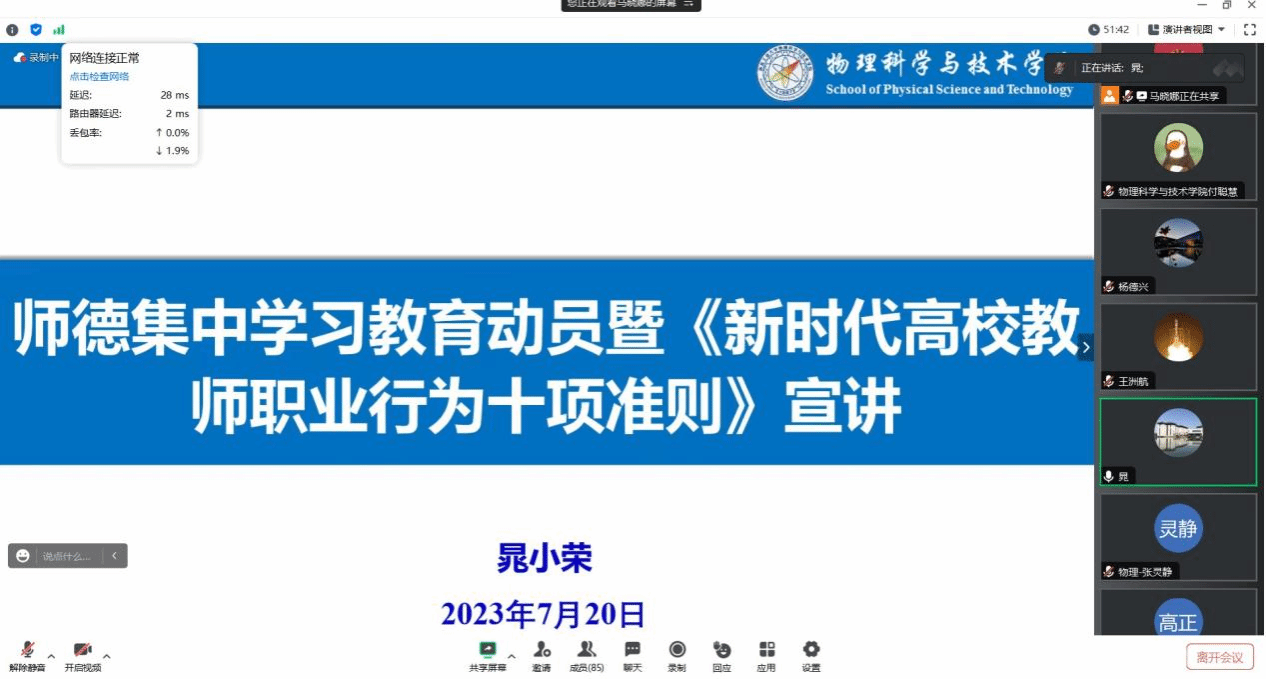 最后,晁小荣书记传达了教育部和学校关于师德集中学习的要求,结合习近平新时代中国特色社会主义思想、习近平总书记关于教育的重要论述和指示批示精神,讲授了专题党课,并对师德集中学习工作任务进行了部署。带领全体教职工学习了《新时代高校教师职业行为十项准则》、《研究生导师指导行为准则》、《bl动画