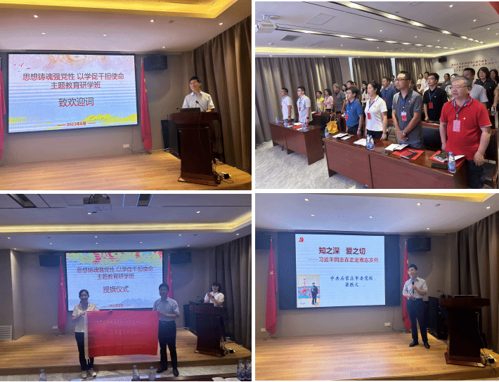 党委书记晁小荣作动员讲话,他表示全体学员要珍惜学习机会,在新时代的赶考之路中建功立业。通过学习,进一步解放思想、统一认识,深刻领悟西柏坡精神的丰富内涵,这次重点围绕“西柏坡精神”是什么、为什么要学习“西柏坡精神”、如何践行“西柏坡精神”三大问题进行学习,通过重温革命历史,不断锤炼党性,提高能力,走好新时代赶考路,为开创教育工作新局面再建新功。随后,中共石家庄市委党校公务员能力建设研究部主任梁胜文教授致欢迎辞,并向培训班授旗,生命学院党委书记牟蕾代表培训班全体学员接旗。最后,梁胜文教授讲授了《知之深 爱之切——学习习近平在正定的岁月》专题党课,梁教授的讲解思想深邃、深入浅出、案例丰富,具有很强的理论性和指导性。全体学员跟随梁教授的讲解,追寻习近平总书记正定足迹,探寻习近平总书记施政思想的起源和初心足迹,使全体党员进一步深化了对习近平新时代中国特色社会主义思想丰富内涵及其形成脉络的认识。