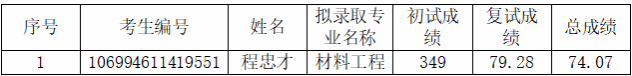 考生朱定强,考生编号106994611212756,主动自愿放弃bl动画 材料工程的拟录取资格,经学院研究生招生工作小组审核通过,现根据成绩依次候补录名单公示如下: